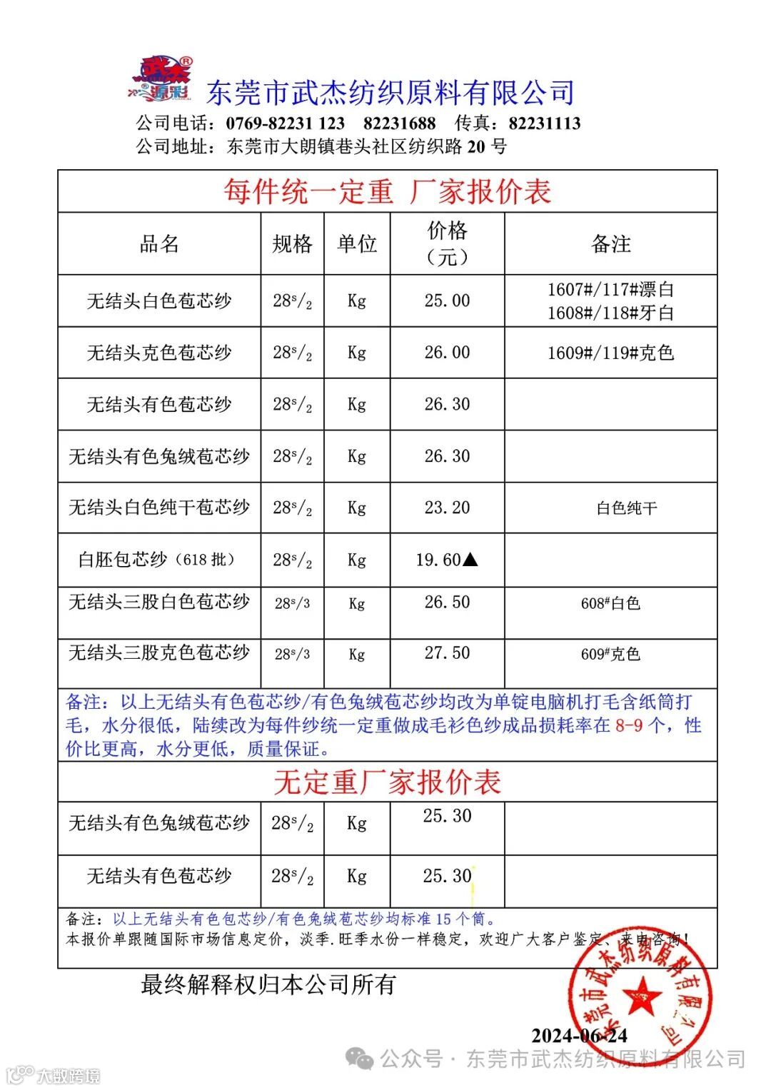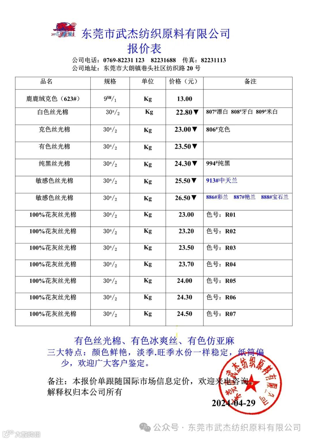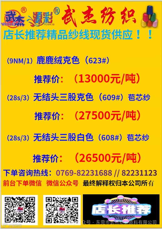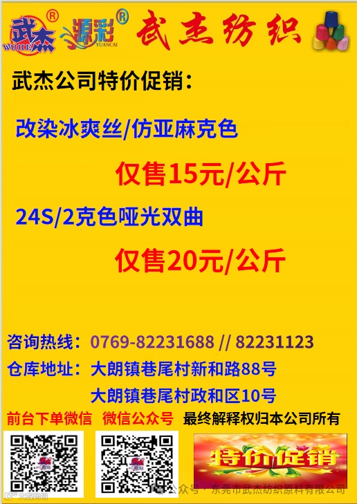 东莞市武杰纺织原料有限公司尊敬的广大客户: