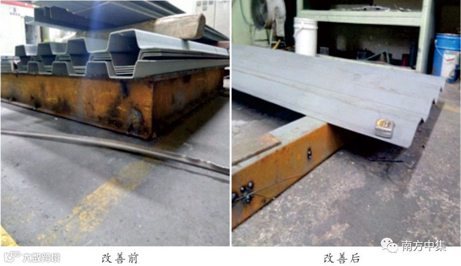 他是这样说的,也是这样做的。去年他刚接手返修班时,发现部件返修台是一个用“工字钢”做成的平台,平台面离地面200mm。对超长的侧板、前墙板进行气割时,由于位置较高,操作工只能弯腰或半蹲着,所以拿割枪的手是悬空的,拿气割的手很不稳,割线不直,每次割完还要划线再用打磨机修直,导致割口质量差、花费工时多。于是,他到一期车间找来几段100mm的废旧方管,重新做了一个返修平台。改善后,平台的高度就降低了100mm,操作工就可以蹲下来把手靠在膝盖上作为支撑点,手不再悬空,割枪就能够拿稳,从而提高气割的质量、减少割口打磨的时间。这虽然只是一个小小的改善,却改善了员工们习以为常的工作方法,既省时省力,还提升了割口质量,降低砂轮片的消耗成本。