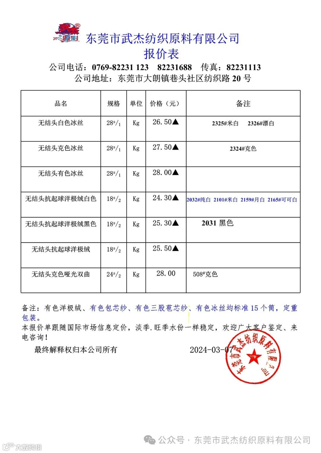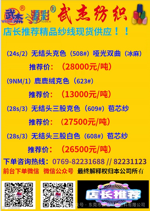 东莞市武杰纺织原料有限公司尊敬的广大客户:
