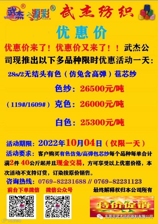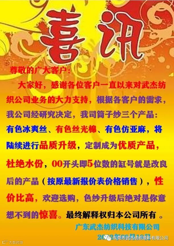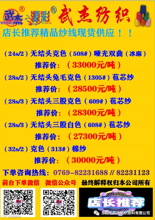 东莞市武杰纺织原料有限公司武杰公司筒子染产品品质将陆续升级,带给你更好的用户体验!