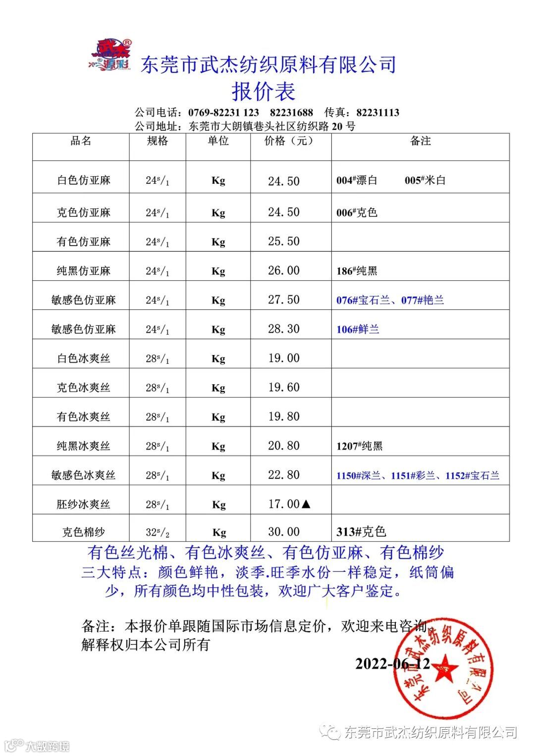 本公司微信公众号报价表已同步更新欢迎大家关注
