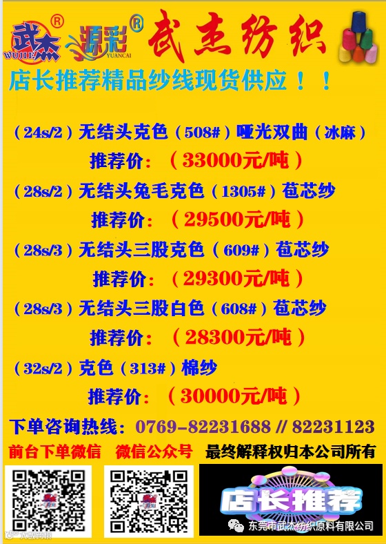 备注:我司有色(高弹、仿兔、兔毛、三股)苞芯纱、有色安哥拉洋极绒、有色哑光双曲、有色冰丝、纯干白安哥拉洋极绒等产品均标准15个筒,重量22.5-23.8公斤/件。