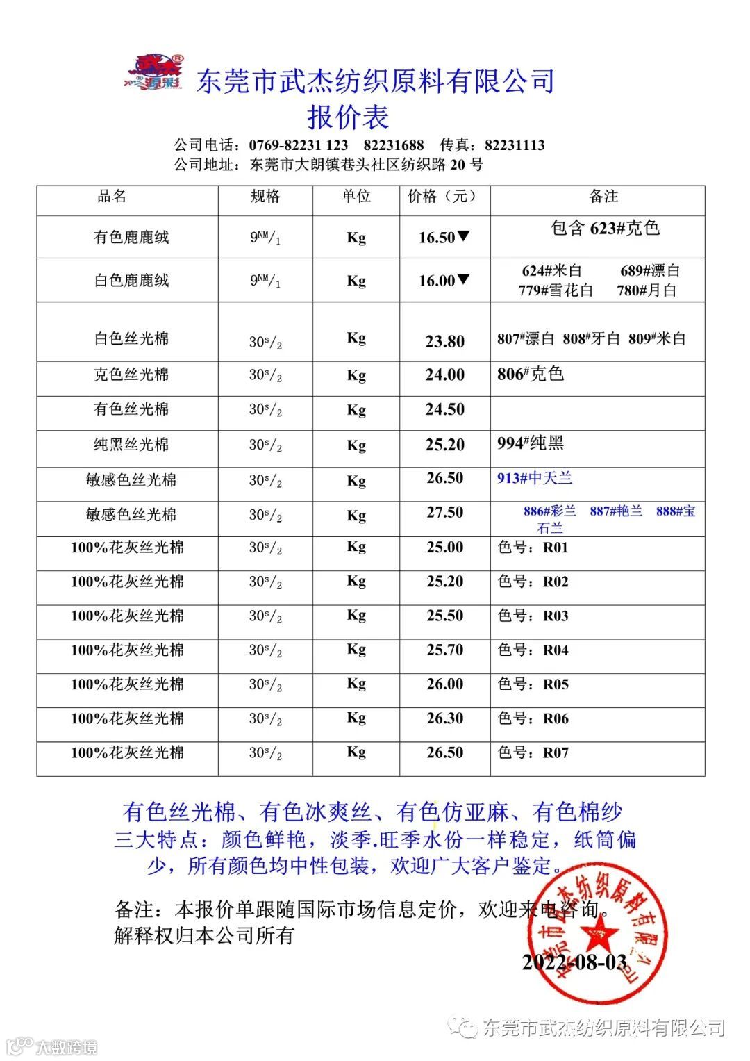 本公司微信公众号报价表已同步更新欢迎大家关注