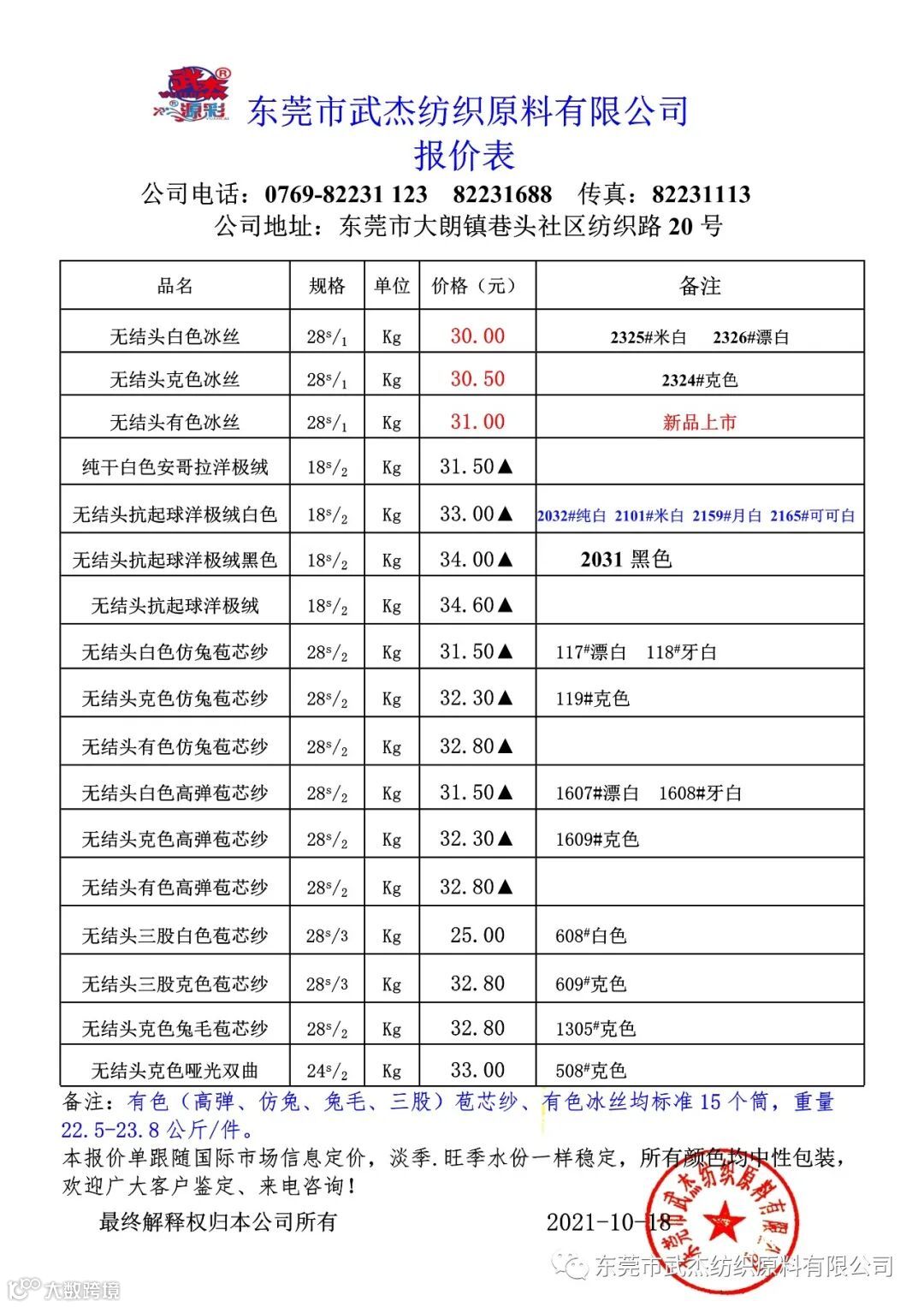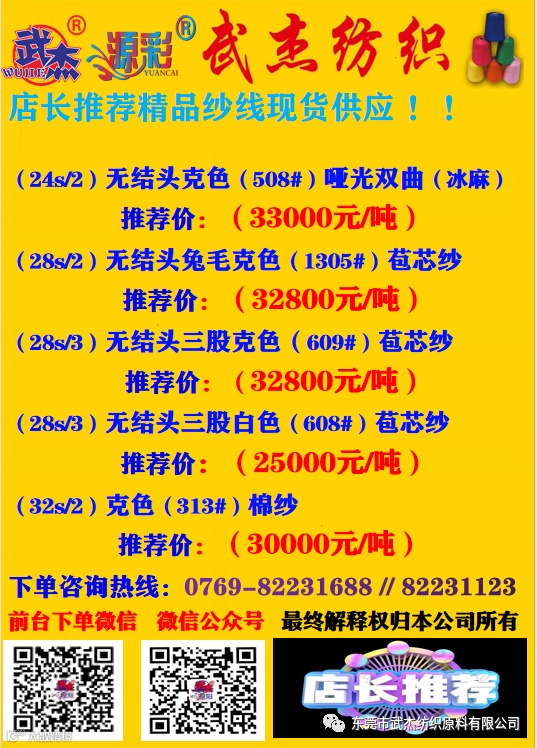 无结头有色(仿兔含高弹)苞芯纱(包含克色、白色)均在原基础价格有所上调