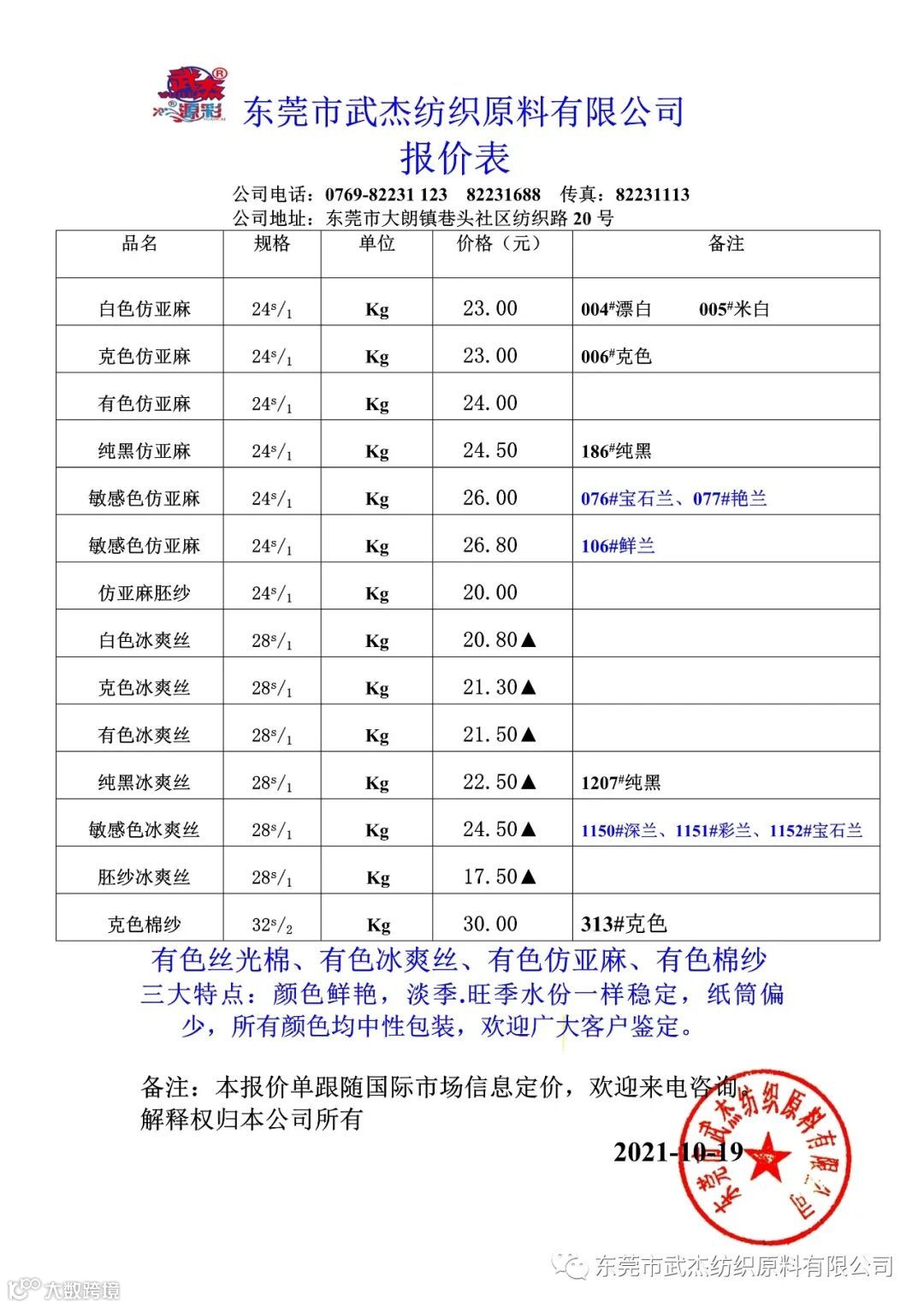 本公司微信公众号报价表已同步更新欢迎大家关注