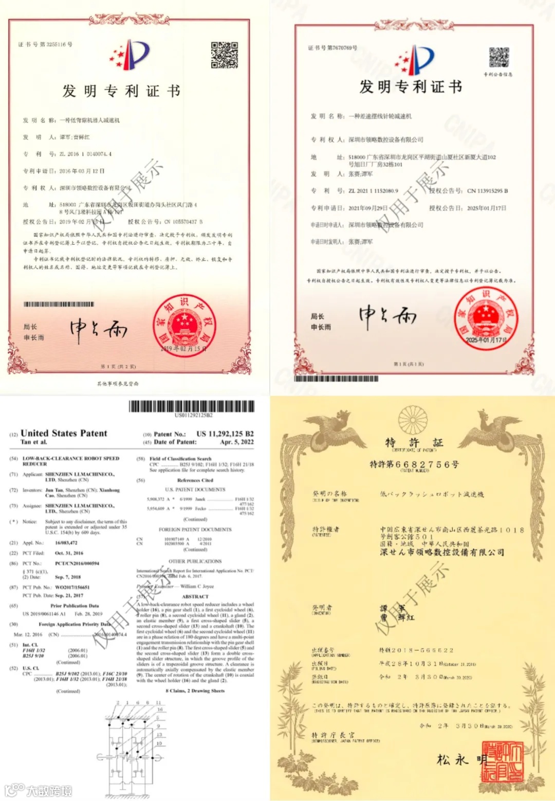 2016年起,领益智造自研的CSV减速器(摆线针轮减速器)相继获得国家发明专利《一种低背隙机器人减速机》《一种摆线针轮谐波传动装置》、美国发明专利《LOW-BACK-CLEARANCE ROBOT SPEED REDUCER》、日本发明专利《低バックラッシュロポット減速機》,并将自研减速器应用到自研机器人,打造公司独特技术护城河。