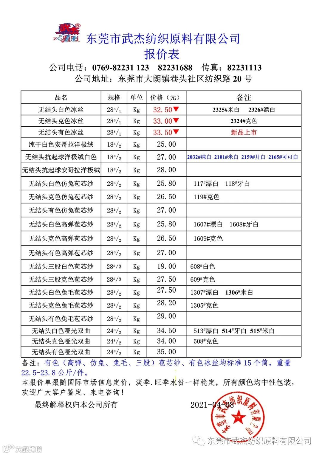 我司有色冰爽丝(含克色、白色、纯黑、敏感色)均在原基础价格下调500元/吨