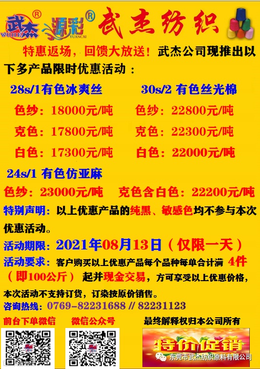 导读:特惠巨献,回馈大放送武杰公司现推出以下多产品限时优惠活动仅限2021年08月13日一天,现金交易欢迎大家前来