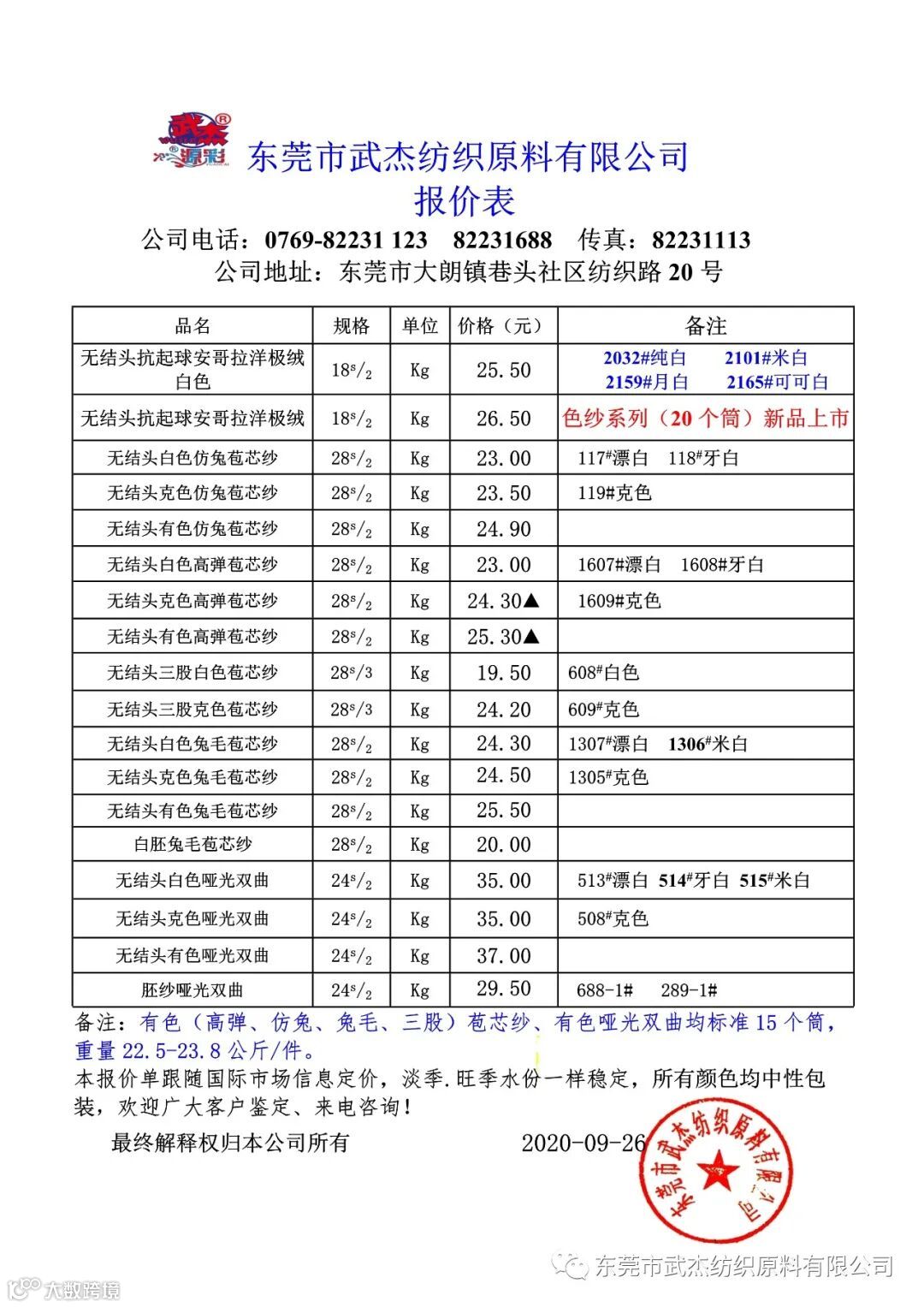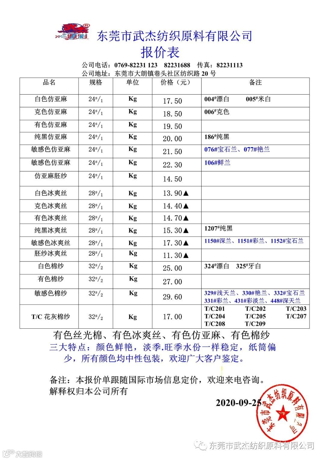 本公司微信公众号报价表已同步更新欢迎大家关注,我司三染厂加足马力生产,货源充足,优惠多多欢迎大家来砸单!