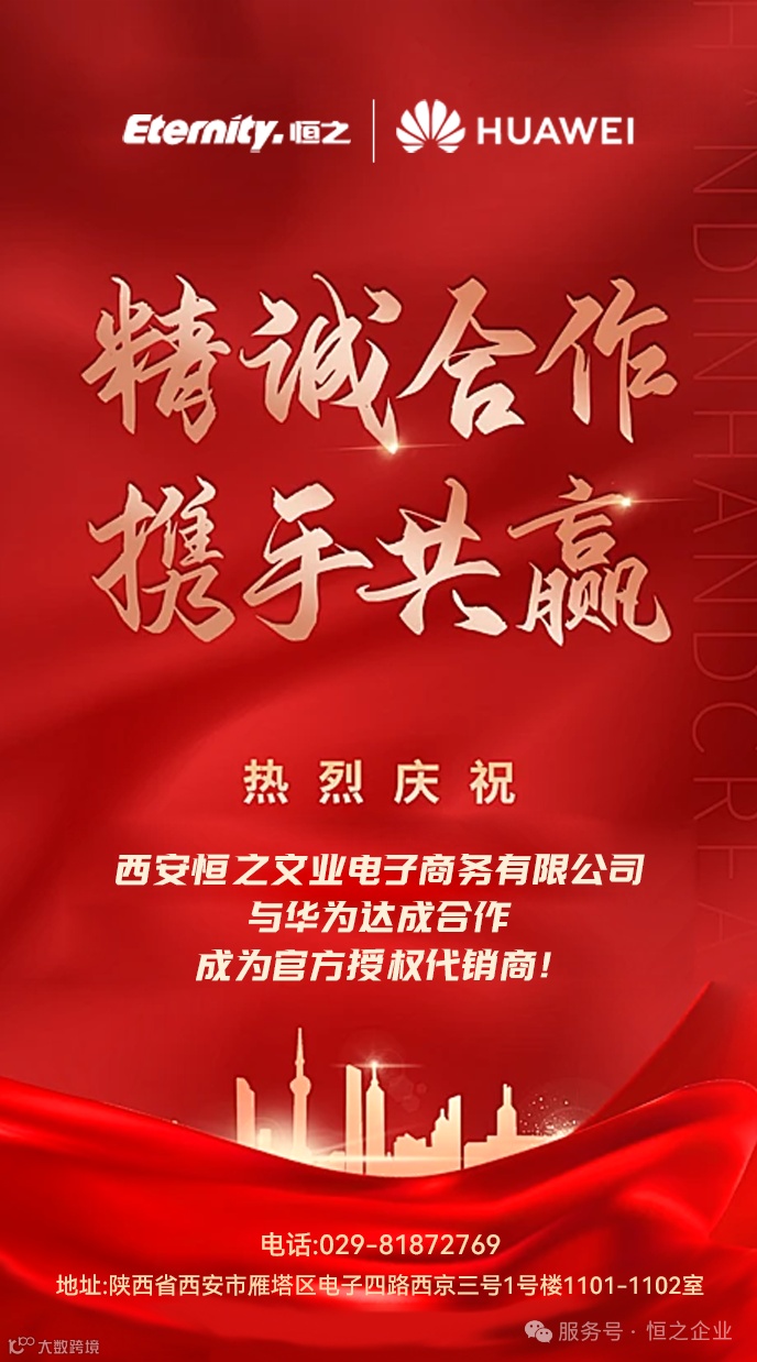 近日,西安恒之文业电子商务有限责任公司成功与华为达成合作,成为华为官方授权代理商。