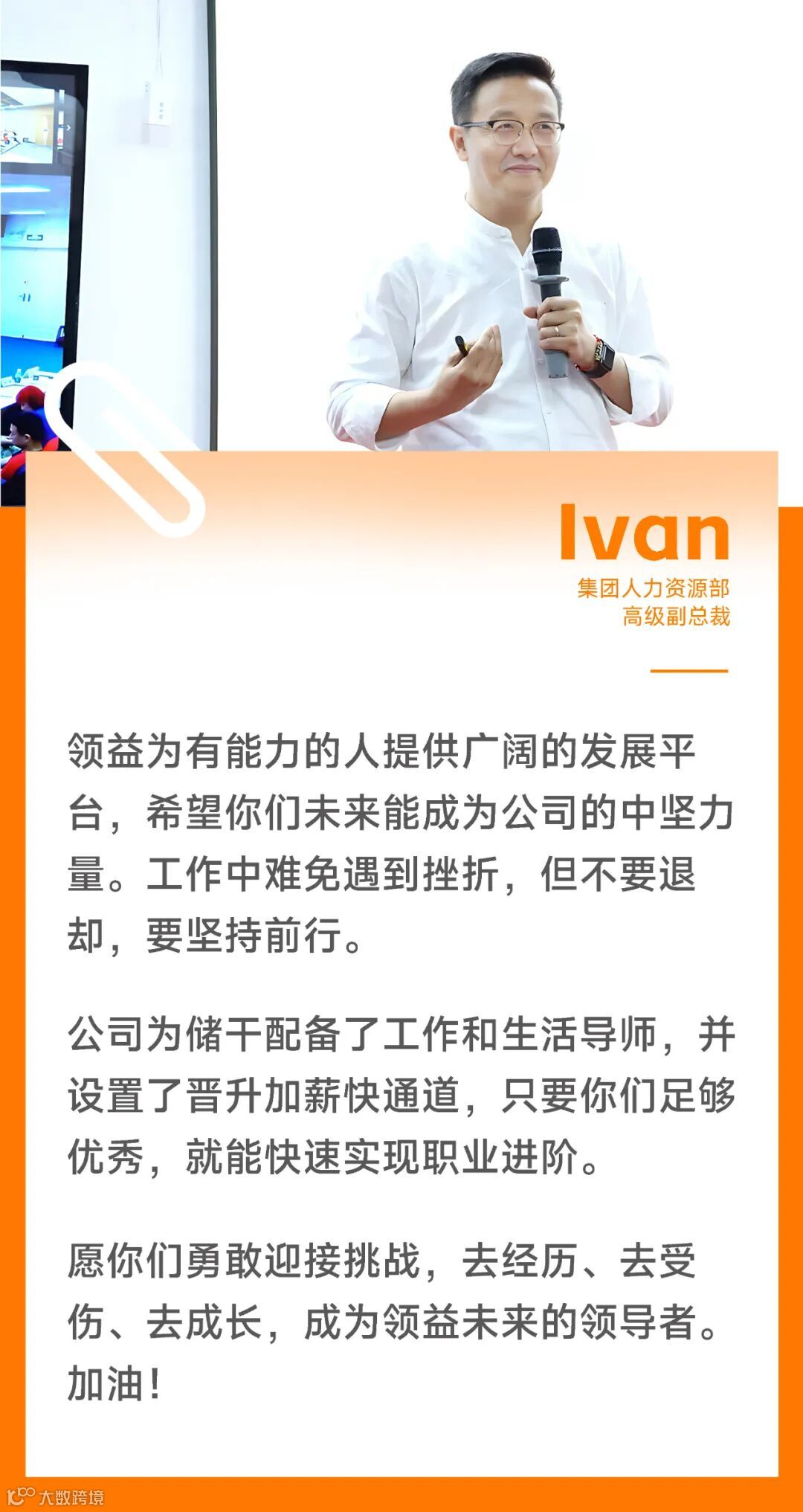 随后,COO2高级副总裁Mars发表了热情洋溢的致词,为即将踏入职场的“未来之星”们送上宝贵的建议和诚挚的祝福。