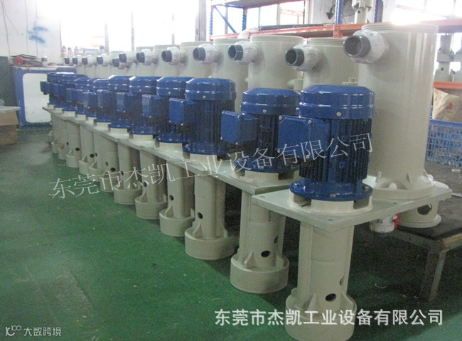 杰凯耐酸碱立式泵使用范围非常广泛,如蚀刻线、废水处理设备、洗涤塔、高温或内含结晶之化学液体、化学搅拌槽或反应槽内之各类液体循环输送作业,亦可作为热交换循环使用及配合过滤器之过滤操作。杰凯JKD系列槽外及槽内都适合使用。