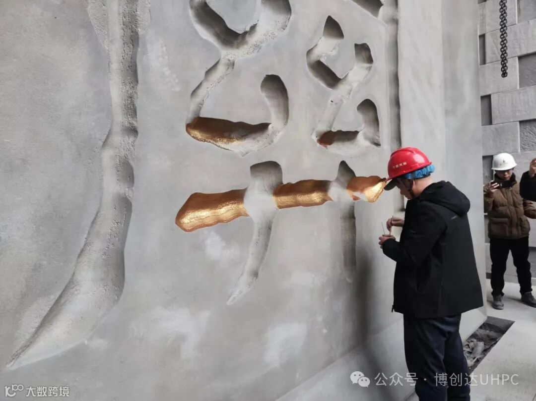 表面阴刻文字和仿石效果,达到了建筑师对材质天然属性石壁石刻恢弘大气的艺术表现力要求。