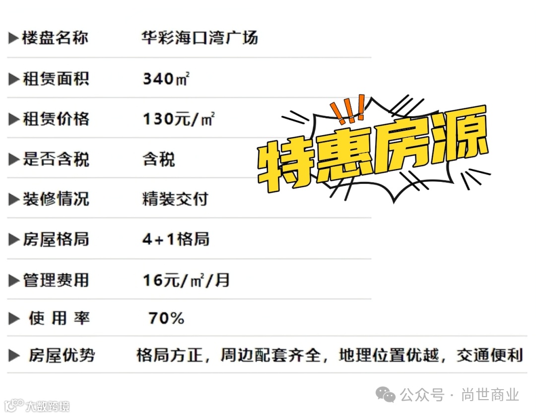 『华彩海口湾广场』海口湾综合体,全海景会客厅。项目位处世纪大桥畔,海口湾核心景观带,紧邻国贸CBD。本项目总用地面积34082.83㎡,总建筑面积173454.73㎡(其中地上建筑面积128446.56㎡,地下室45008.17㎡),由两栋超高层钢结构办公楼(1栋A座143.88m、B座132.90m)、裙房商业、渔人码头商业及地下室组成。是集甲级办公、主题商业购物街区于一体的城市综合体建筑,建成后将成为海口湾的标志和中心,进一步提升海口市的城市品质与形象。