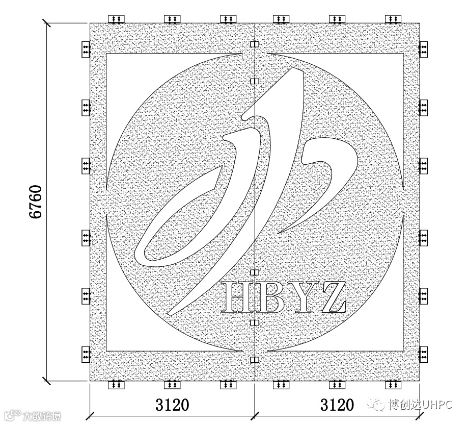 校区LOGO部位用两块UHPC完美展现出来,规格尺寸:L6700*3120,单块面积达21m²。