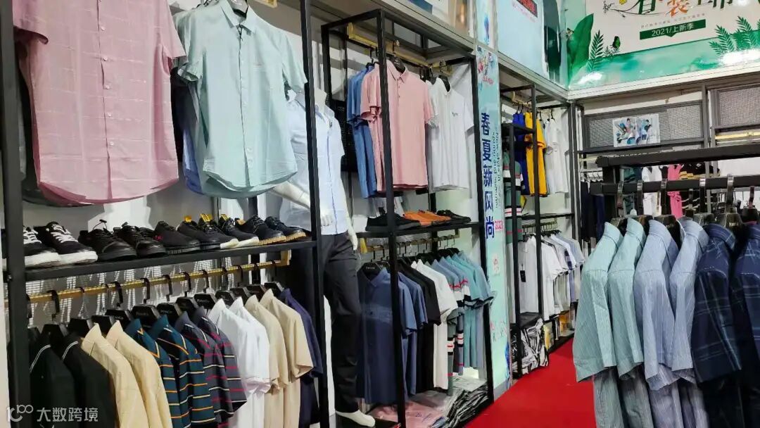 展会现场男装除衬衫外,还有夹克、T恤、休闲裤等2021潮流男装。