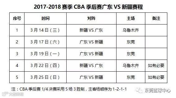 CBA粤疆大战再次上演,从去年总决赛相遇提前到本赛季季后赛1/4决赛碰撞。季后赛1/4决赛粤疆大战采用5场3胜制,主客场顺序为1-2-1-1,广东东莞银行先客战新疆再连续两个主场作战,3月14日第一场开打,狭路相逢勇者胜。