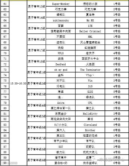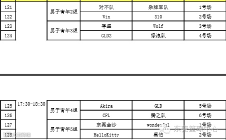 男子青年组赛程