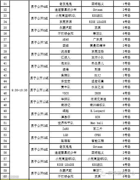 男子公开组赛程