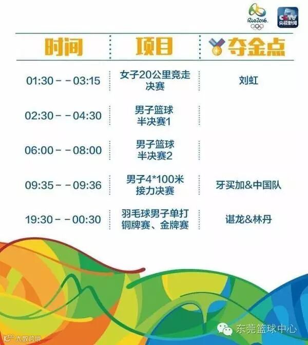 中国队看点:12日,张继科、马龙将力争会师乒乓球男单决赛。田径赛打响,中国选手开始在男女20公里竞走、女子铅球、男子跳高、4×100米接力等项目向奥运奖牌发起冲击。