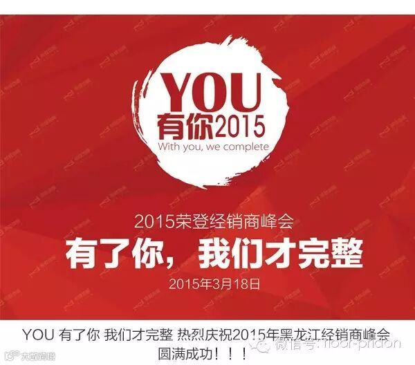YOU 有了你 我们才完整 热烈庆祝2015年黑龙江经销商峰会圆满成功