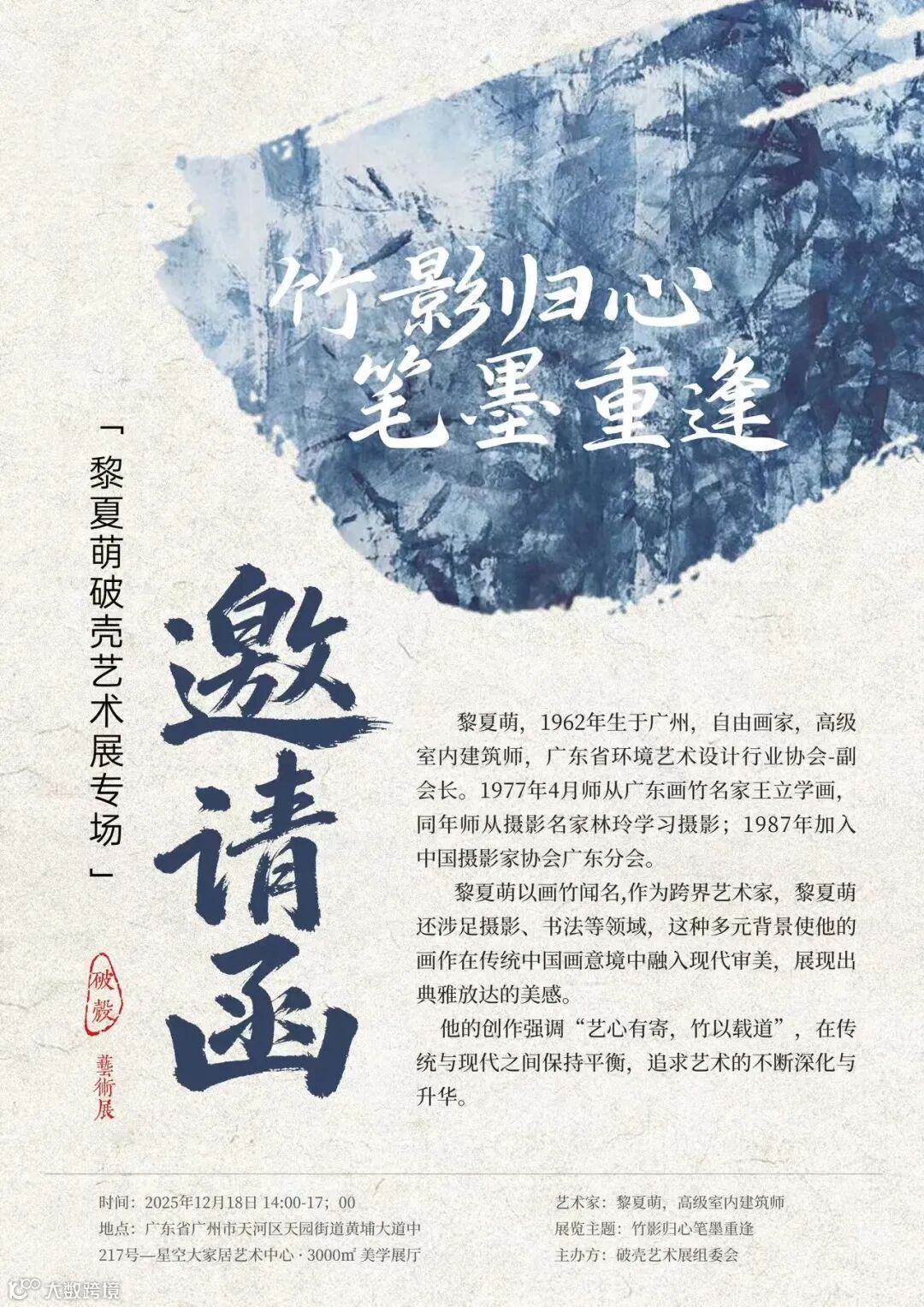 现场,黎老师将分享他“艺心有奇,竹以载道”的创作理念,讲解如何将传统水墨的意境,转化为现代居住的雅致氛围。您可直接与老师交流,问出心中所惑。