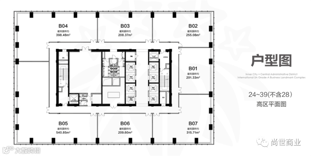 项目内部采用200-2000m²阔绰办公格局,灵活多变分割空间,满足企业不同发展阶段的商务空间需求;3.8米办公层高,合理的进深尺度,以及前瞻性商务设计,提升办公室内开阔的视野与舒展的办公体验。