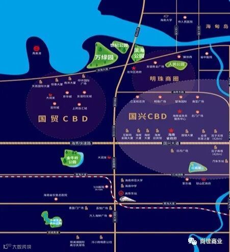 项目位于国兴商圈,国兴大道作为海口发展新中轴,规划打造5KM金融街,构筑金融机构总部集聚地,同时汇聚大量城市TOP级资源配套,是集五大中心资源于一体的海口中央商务区。