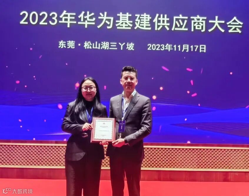 依诺企业凭借卓越的制造技术、优异的产品品质、稳定的交货期以及完善的配套服务,被华为基建授予“优秀合作伙伴”荣誉,依诺企业副总裁【田庆忠】受邀出席会议,并作为企业代表领奖。