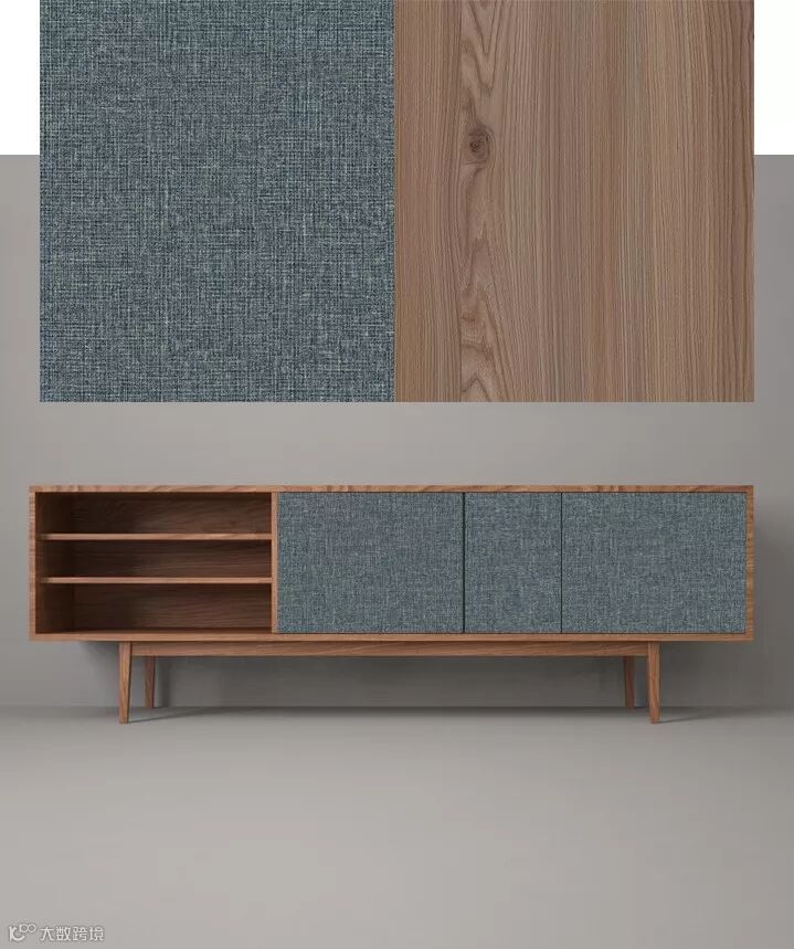 新牛仔布纹逼真的织物效果使得面板显得有层次感,与普通的布纹相比,通过压贴同步钢板使新牛仔布纹具有很强的装饰性。