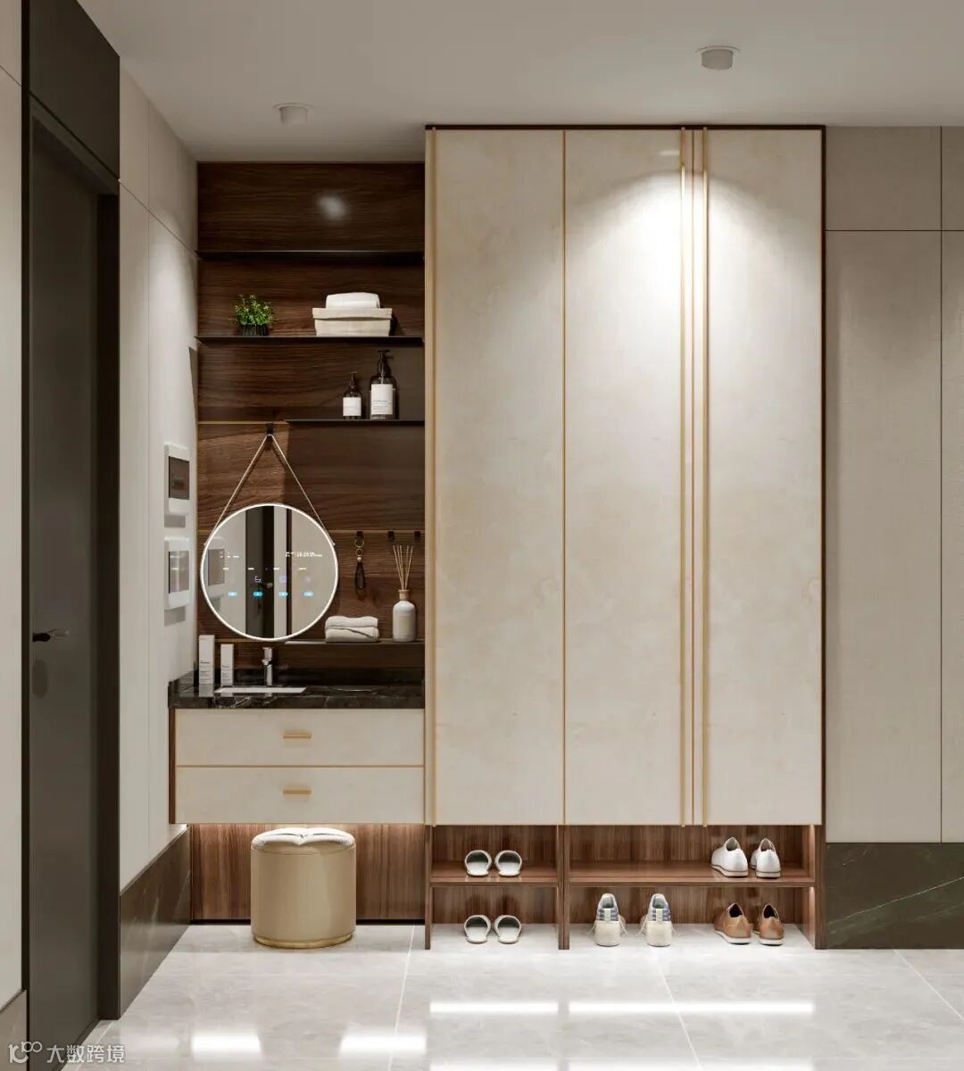 随着时代的发展,家居产品也在不断智能化和科技化。如今,用手机就可以控制全屋灯光和电源;在入户处安装智能化妆镜,不仅可以整理仪容,还可以显示天气、温度;玄关柜内装上智能鞋柜,可以一键消毒,还具有杀菌功能,大大提升了生活便利度。