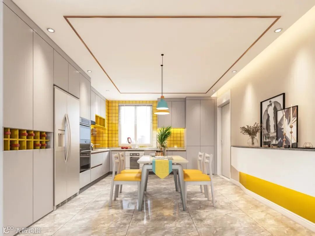 当客厅、餐厅、厨房一体化后,动线也自然被缩短,不仅让日常行动更方便,还可以增加家人之间的互动,即使身处客厅,也可以和在厨房里做饭的家人聊天,一家人其乐融融,非常温馨。