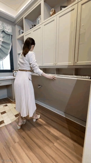 除了隐形门,像挂壁桌、侧翻床也是很好的隐形设计,不用时就贴墙收起来,留出活动空间,需要用时再放下,对于小户型来说相当友好。