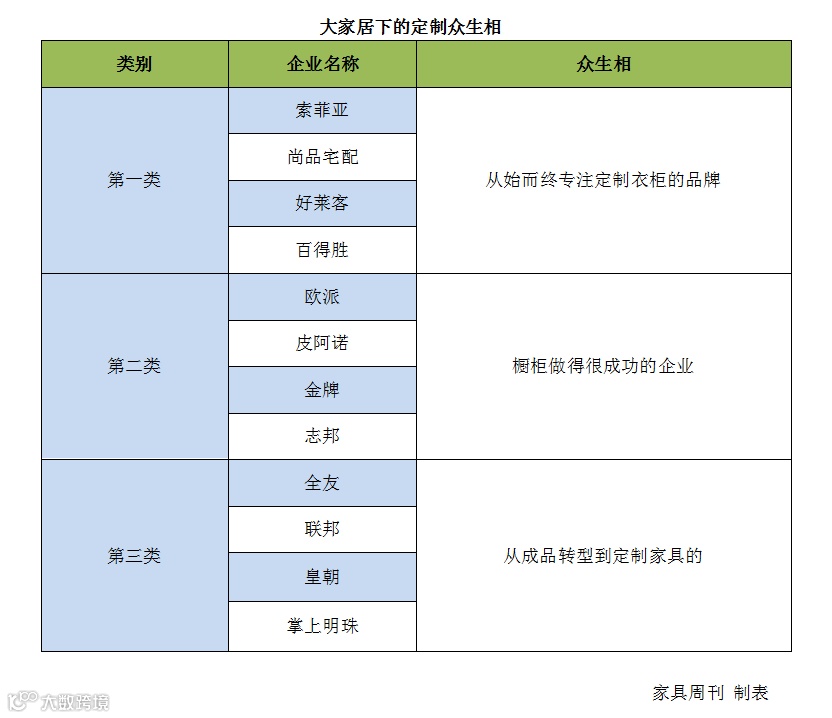 第二类,橱柜做得很成功的企业。其市场铺开了,品牌也有一定的知名度了,进而扩展到定制家具,比如:欧派、皮阿诺、金牌、志邦等等。