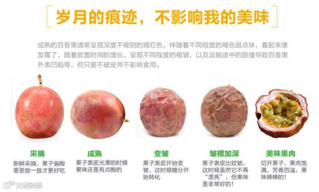 3、 如果表面出现褶皱是更加成熟的表现,不是坏了,皱了的百香果酸度会下降,甜度会增加哦