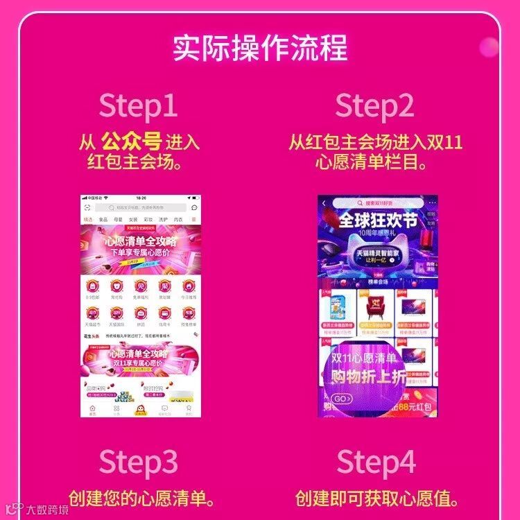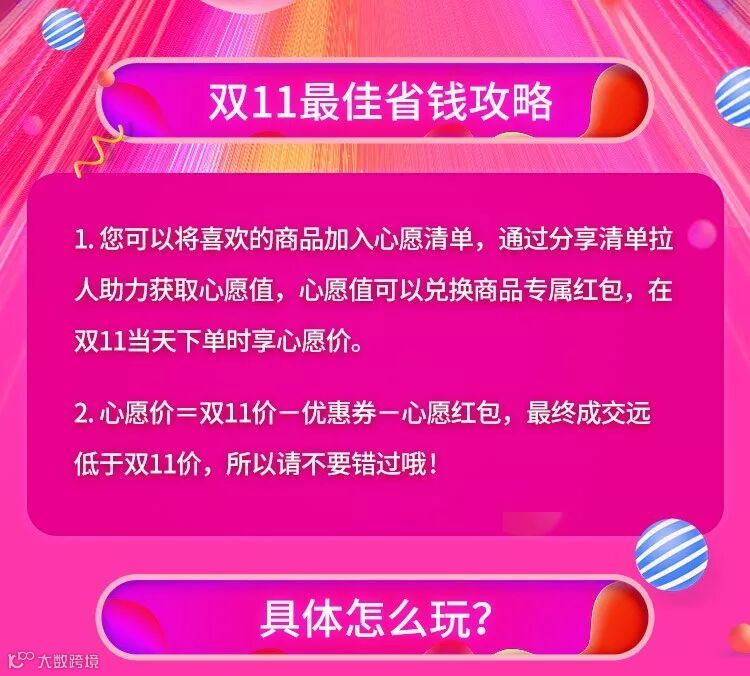 双11清单,就是把您在双11 想买的产品放在清单里面,通过分享清单,让好友帮忙助力,同时你也可以助力别人的清单,都可以获得心愿值,心愿值可以在10号晚上9点兑换专属红包