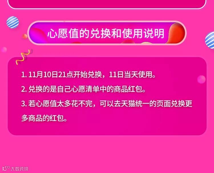 心愿值可以兑换商品专属紅包,在双11当天下单时抵扣。