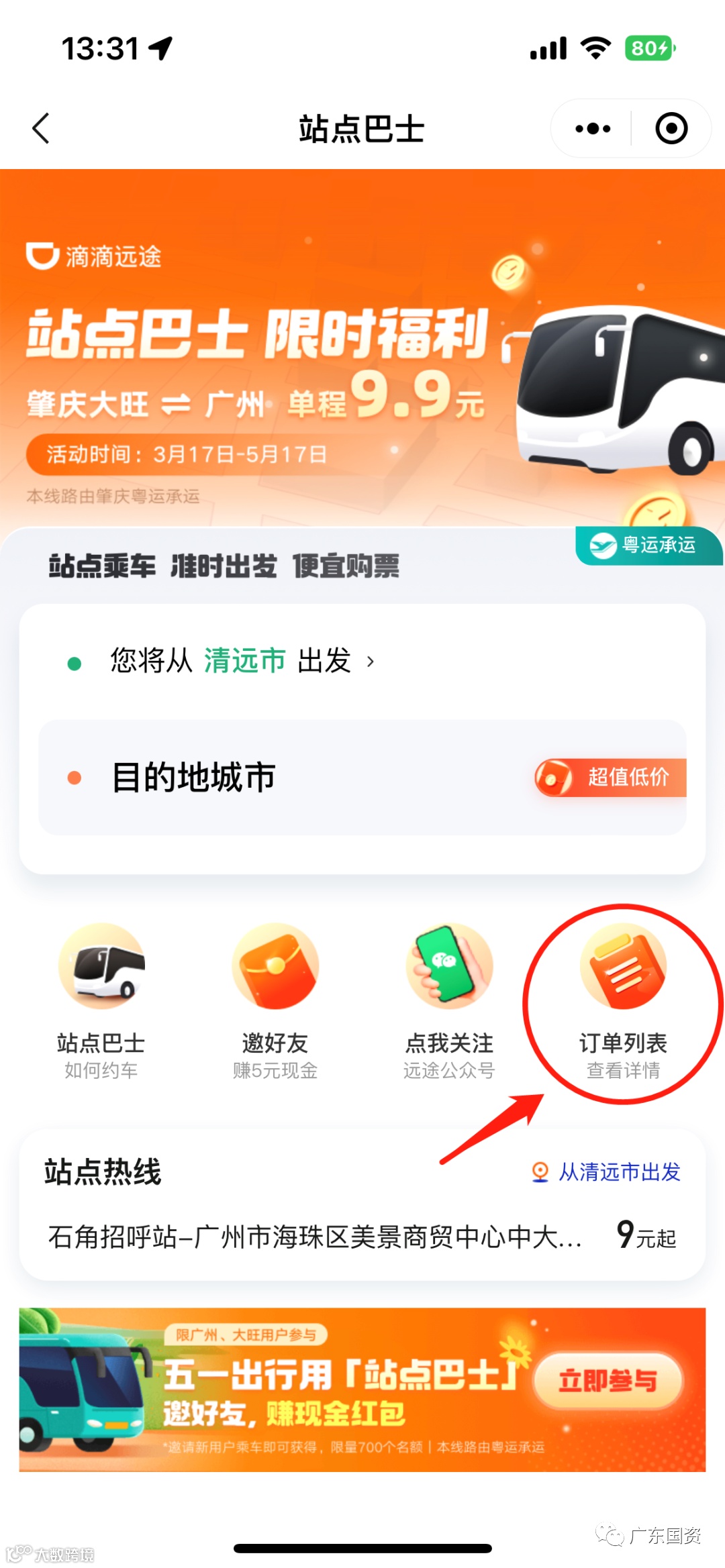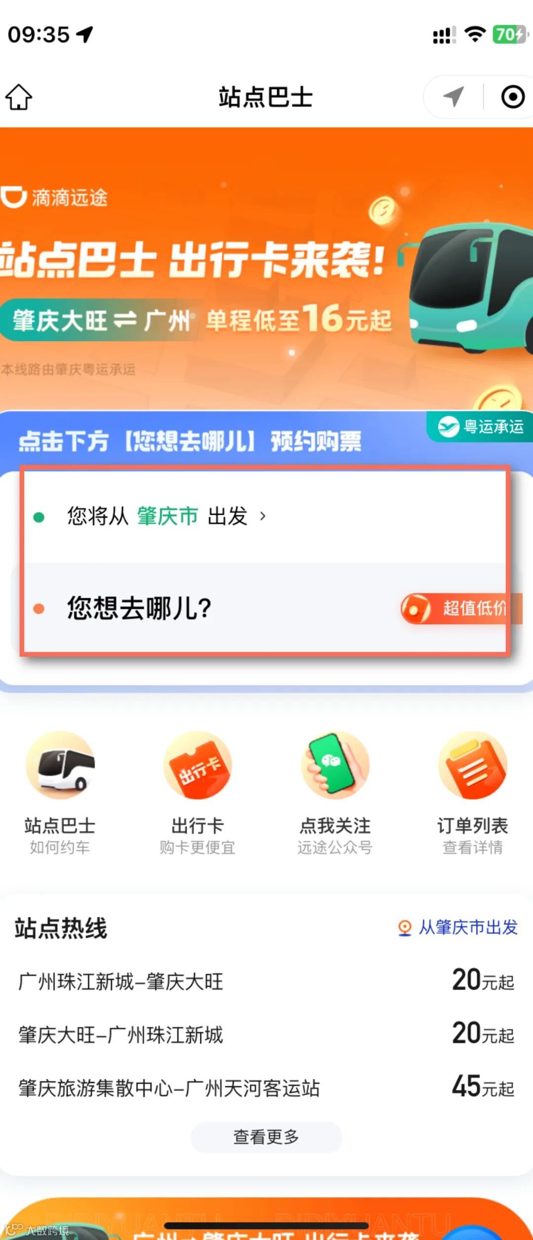 方式一:进入滴滴APP或者微信中搜索小程序“滴滴出行”,选择【站点巴士】