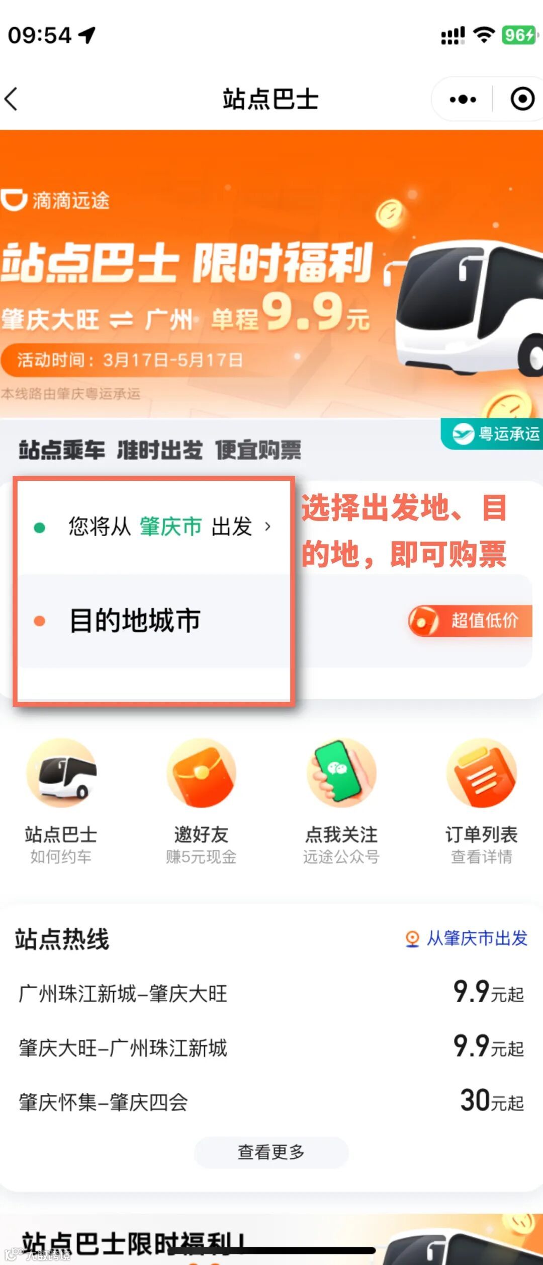 方式二:关注“肇庆粤运”公众号,点击【购票服务】-【站点巴士】