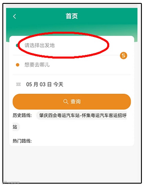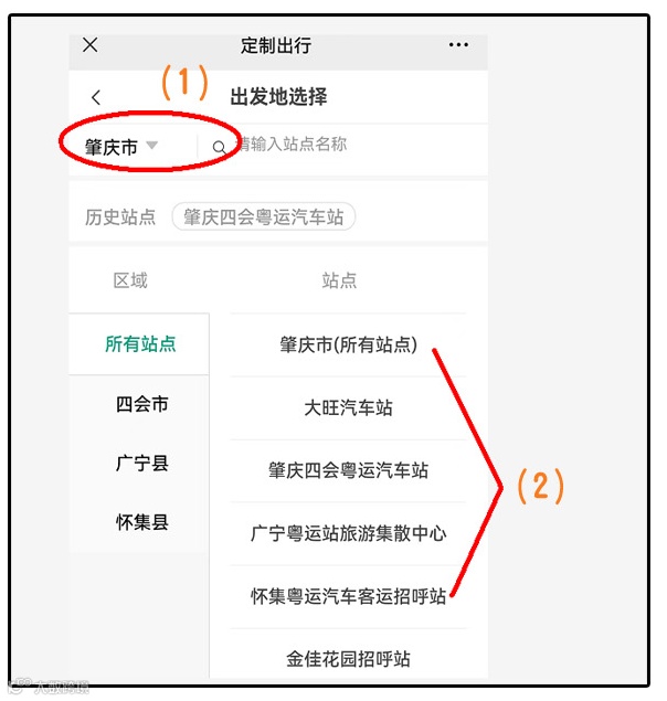 第二步,出发地选择肇庆