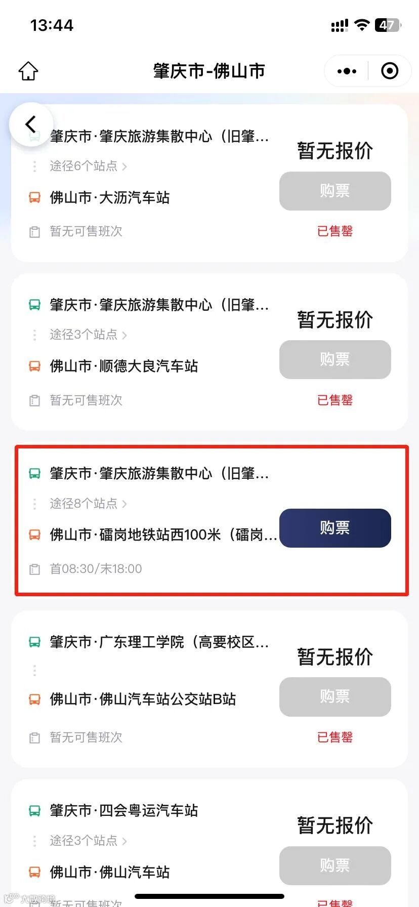 ►佛山回程发班时间