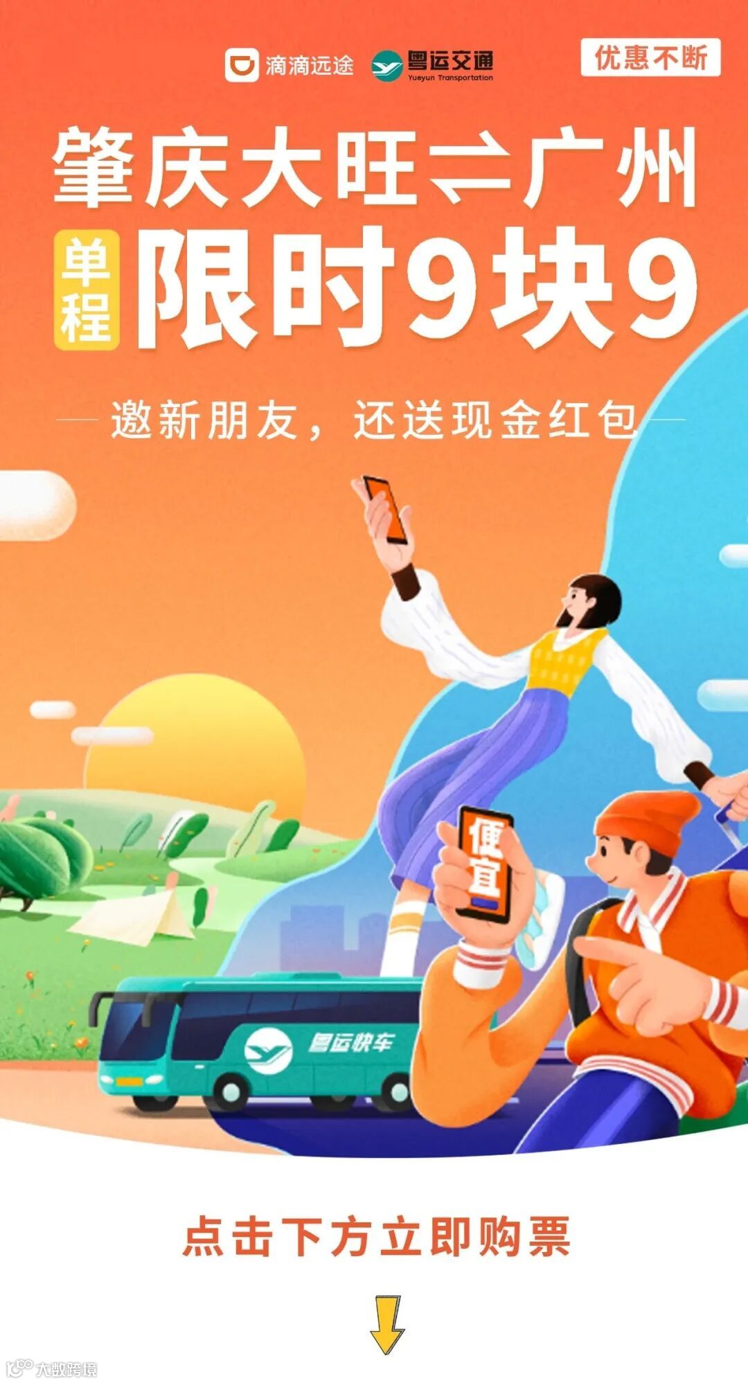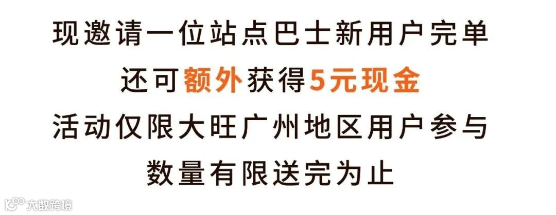 【双重福利】邀请新朋友返现活动上线,大旺往返广州¥9.9持续优惠中!