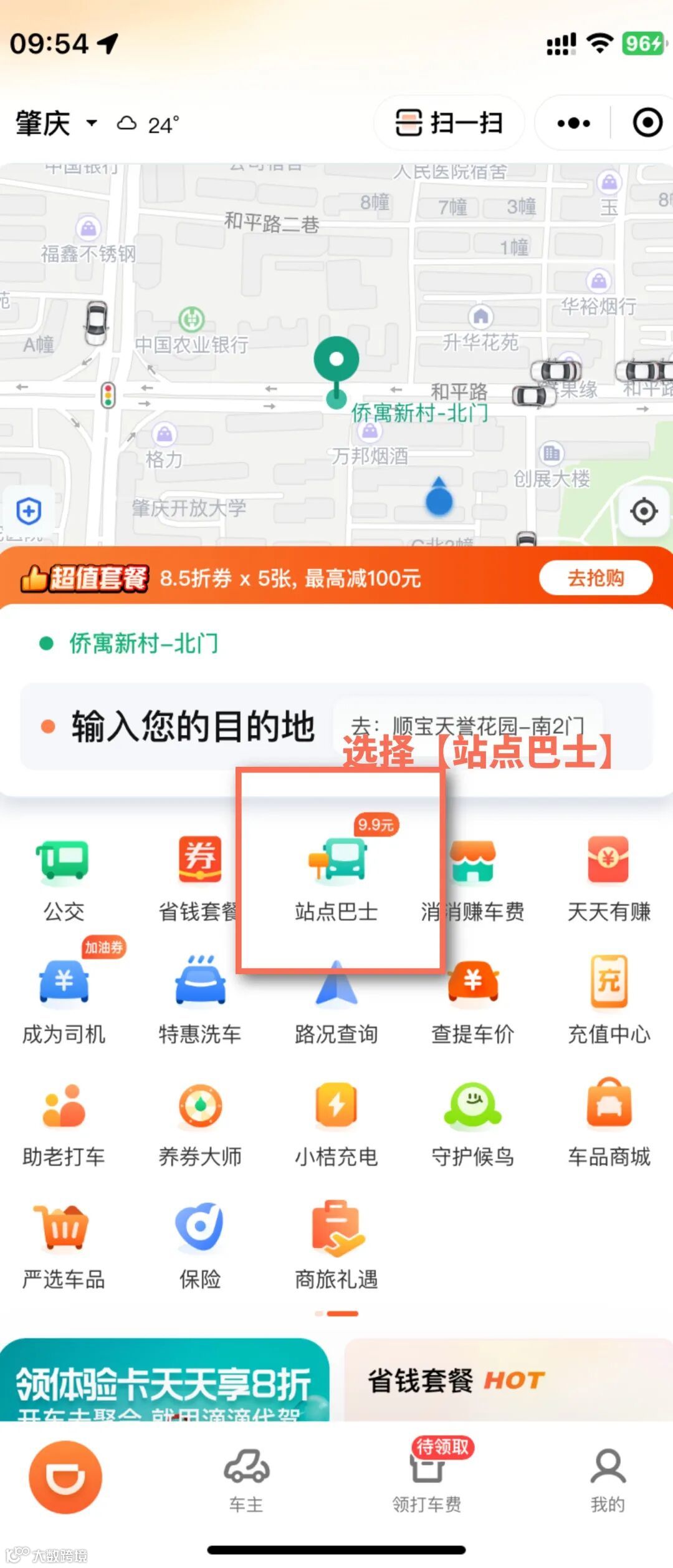 微信中搜索小程序“滴滴出行”,选择【站点巴士】