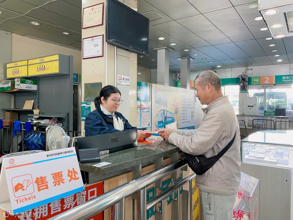 初冬的太阳刚刚凸显,肇庆客运总站的售票员正在为前来购票的旅客办理购票手续,以热情洋溢的笑容和饱满的服务态度开启交运公司新的一天。