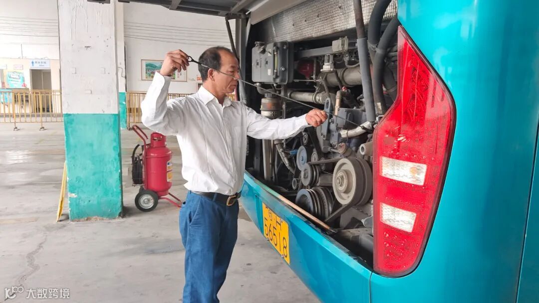 在乘客上车前的半小时,驾驶员罗伟平正在进行出车前的车况监测,交运公司秉承出车必检、合格放行的安全行车原则,有着多项监测程序,除了专职监测员外,驾驶员守护着安全出车的最后一道关卡。