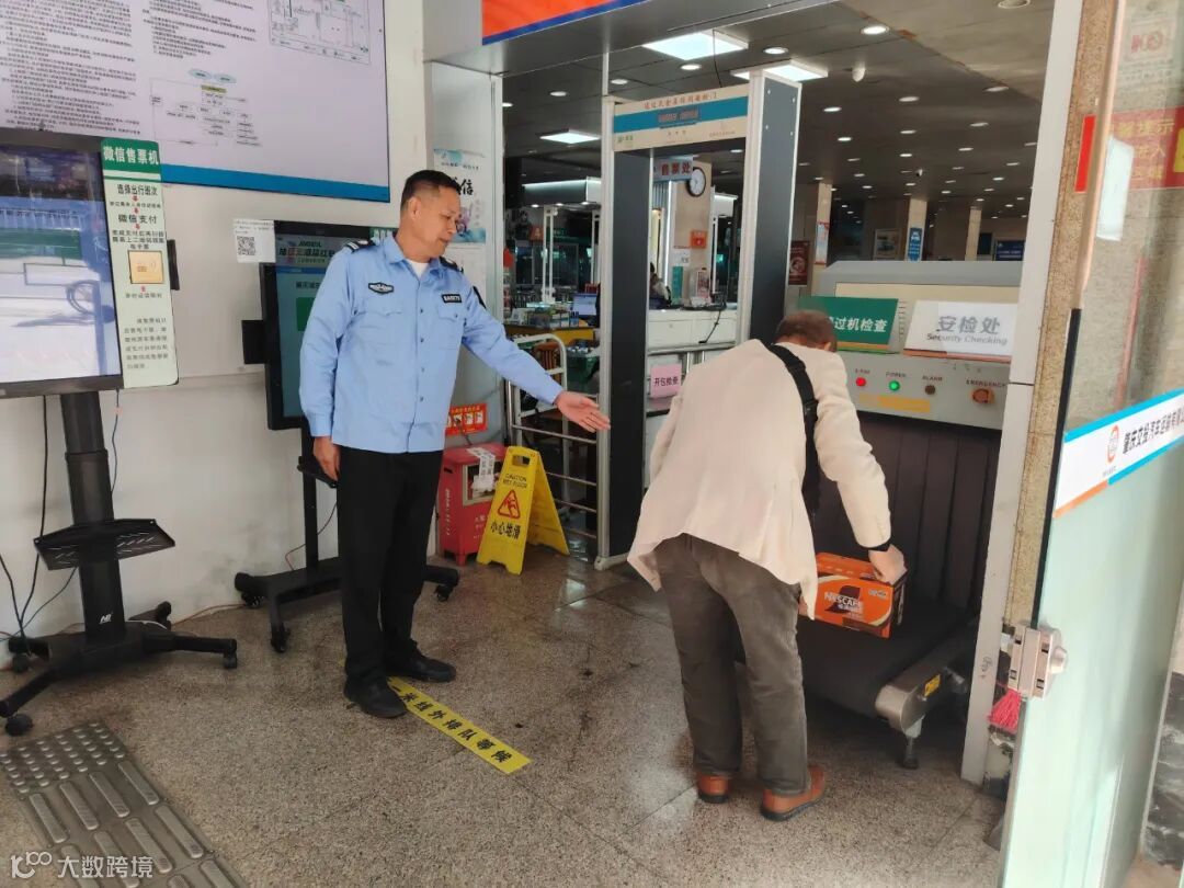 安检机前,安检员严格按照安全乘车要求引导乘客通过安检,守护好候车室与车厢的安全离不开安检员的尽职尽责。