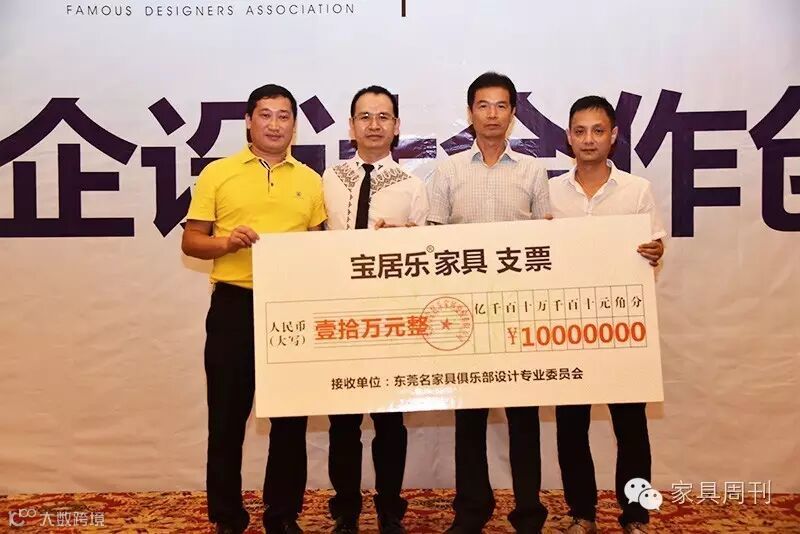 会上,宝居乐家具董事长黎进武向名设委捐赠了10万元资金,用于推动名设委的发展。