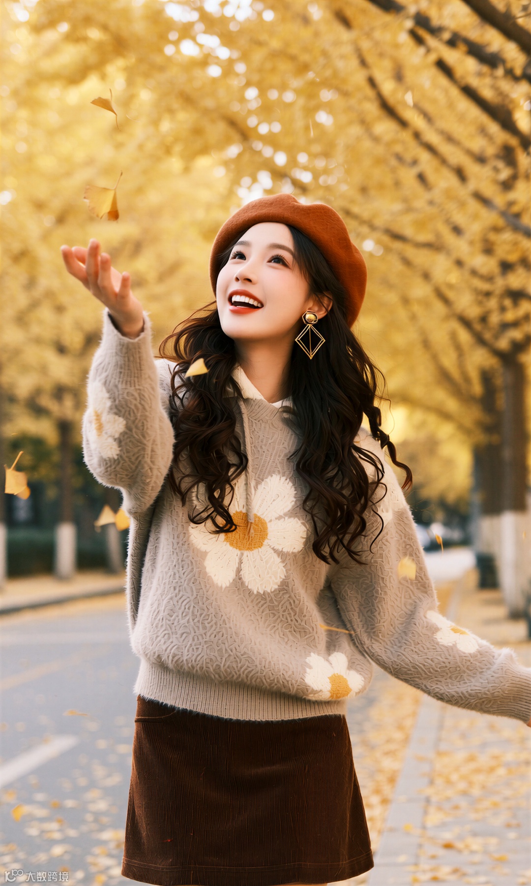 此刻银杏正用最绚烂的姿态告别枝头,而她站在漫天花雨里微笑。原来真正的永恒,不在于抗拒凋零的倔强,而在于拥抱每段时光的虔诚。当衣褶里落满夕阳,我们终于读懂——与自然同频的生命,本身就是不朽的诗篇。