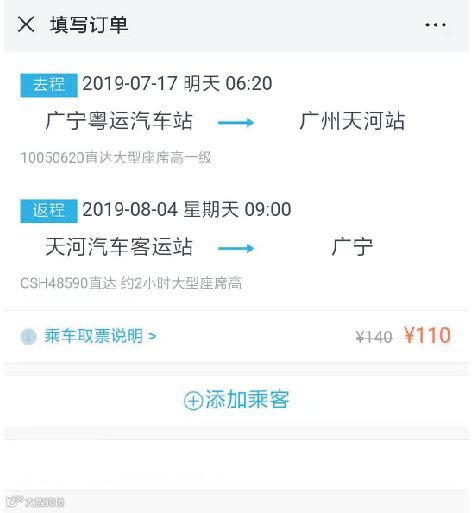 优惠往返套票的订单界面就出现了!