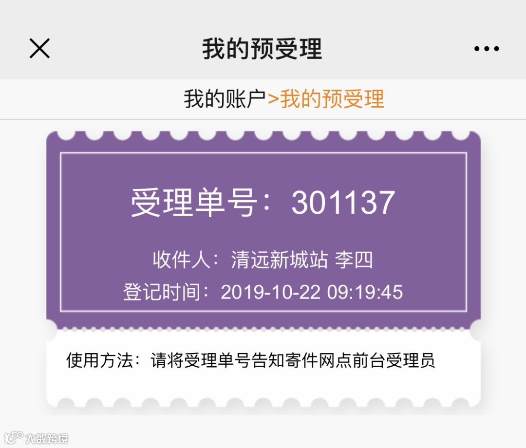 填写寄件预受理信息(模板如下)